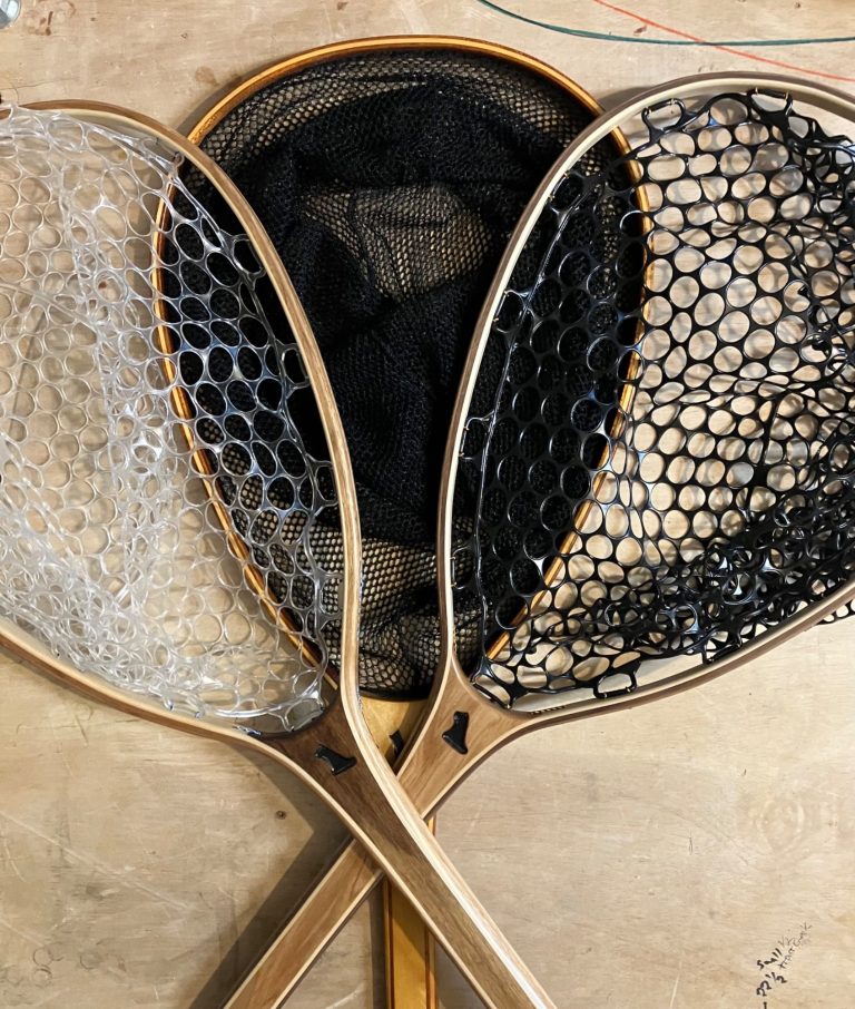 All of our nets come stock with rubber nets. You can choose either black or clear (if available for your model of choice) without charge. We also have premium woven nylon bags available upon request, and for a nominal fee of $20. The bags are much deeper bottomed and lighter than rubber nets, and yet they are very gentle on the fish. For example the woven nylon net bag on the Taylor and Gunnison nets is 32” deep! Great for landing longer and larger fish like salmon and pike.